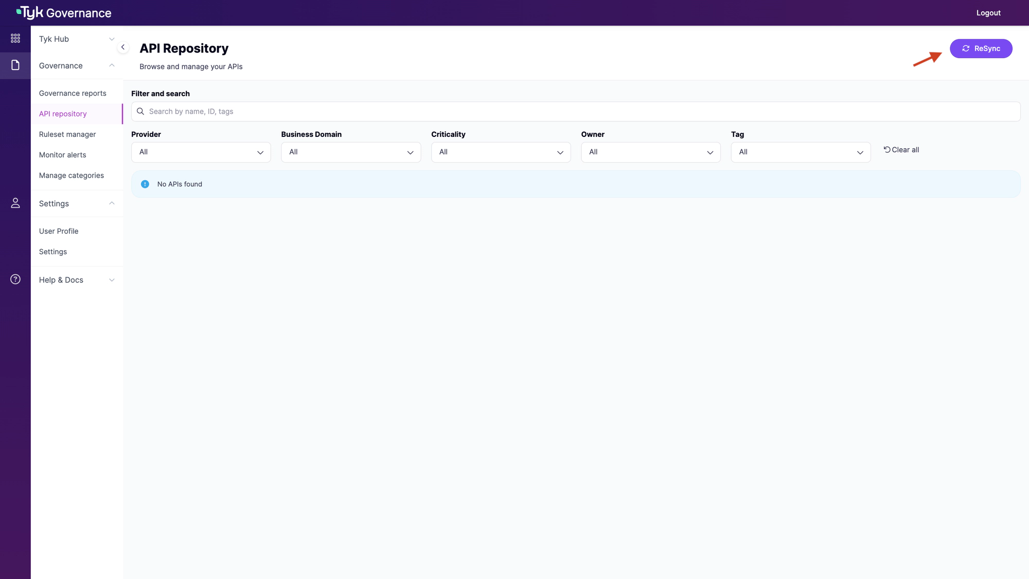 Agent and API Provider Management enables you to deploy, configure, and monitor the Tyk Governance agents that discover and synchronize APIs from various providers.